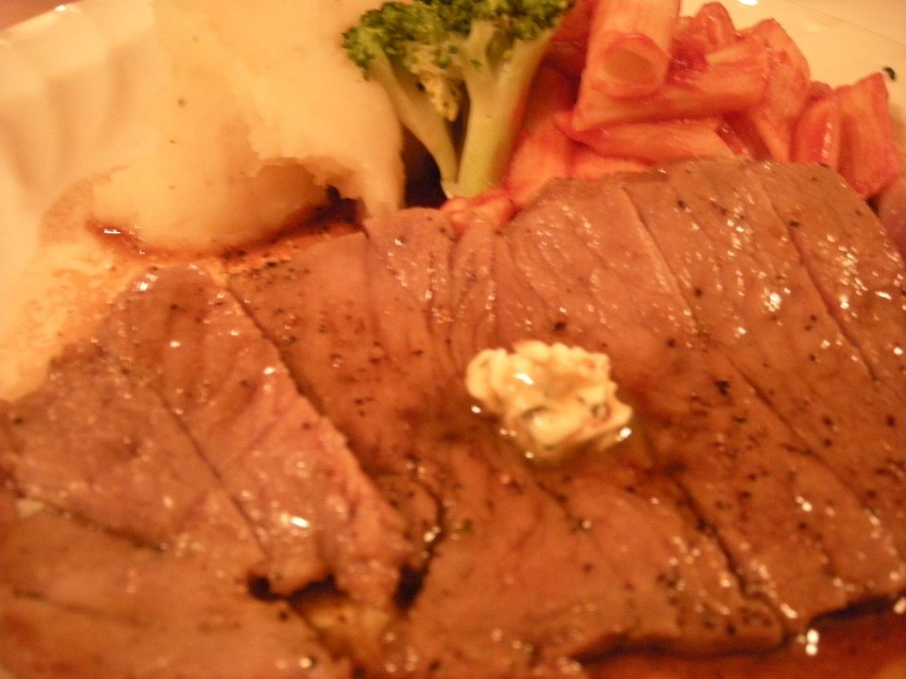 おおお、これが某マイミクさんお気に入りという牛ステーキ定食!