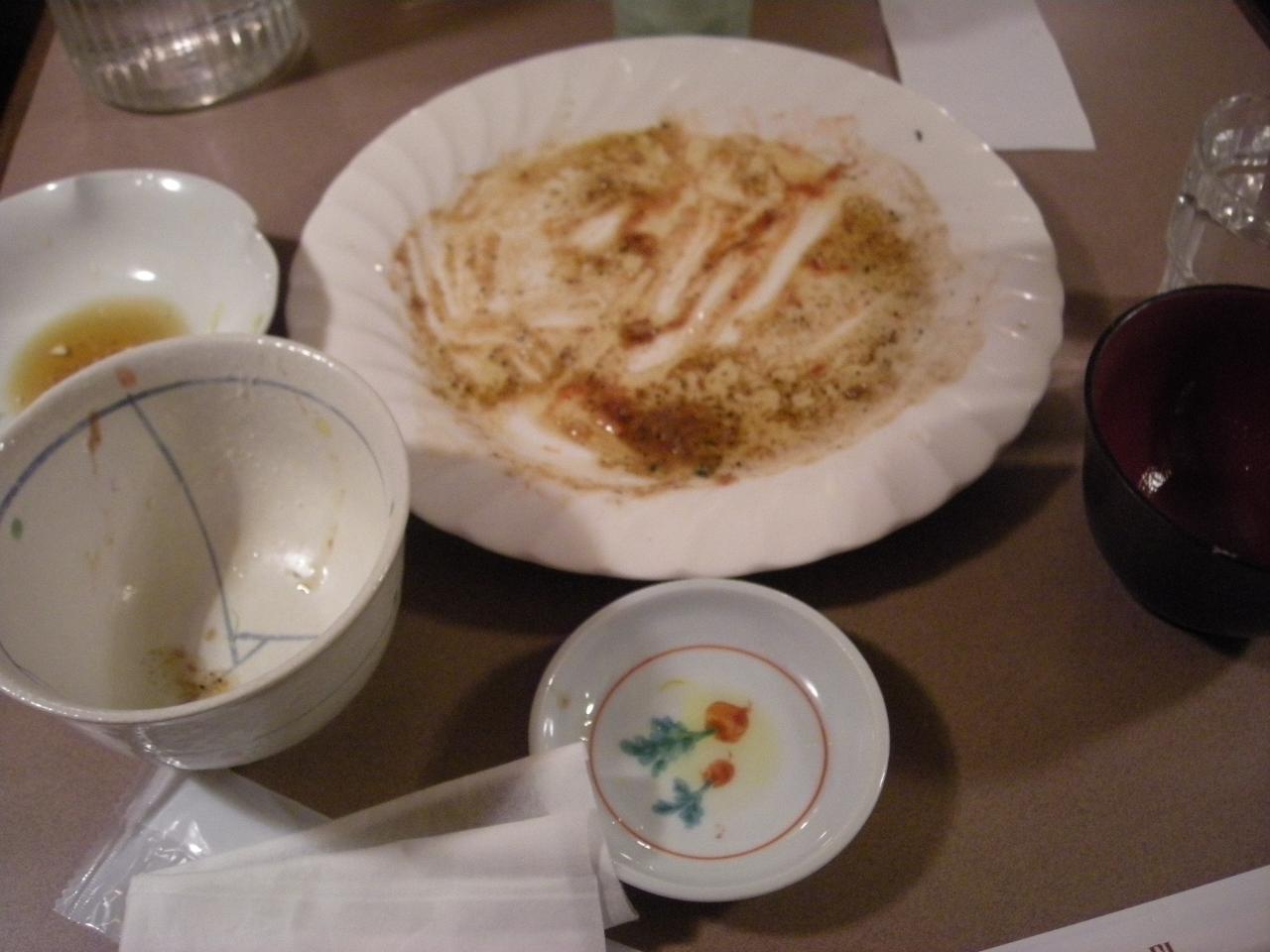 食べている最中に横のテーブルの人たちが帰っていったのは知っていたのですが、「うわっ、汚い食べ方だなー」という声が向かいのテーブルの人から上がったので見てみると…うーん、これはちょっとひどいんじゃないでしょうか。