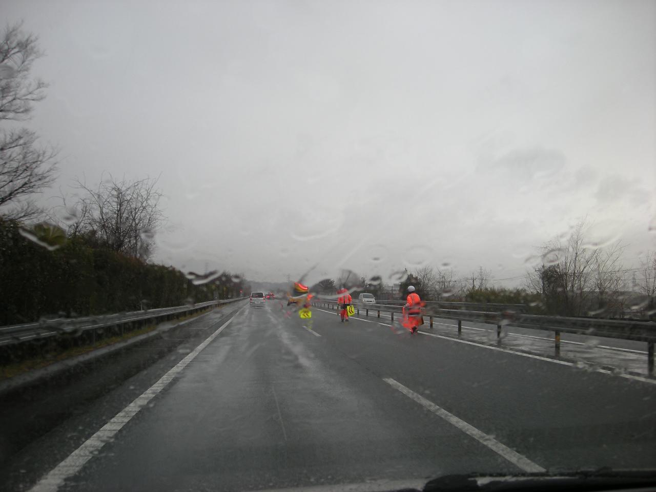 その間、路側帯を爆走していく車がいたり。