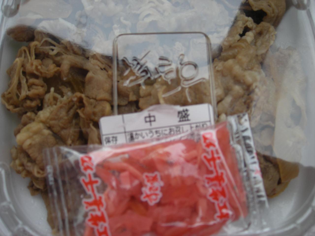 すっかり遅くなりましたが、テイクアウトした牛丼 (中盛) でお昼ご飯です。