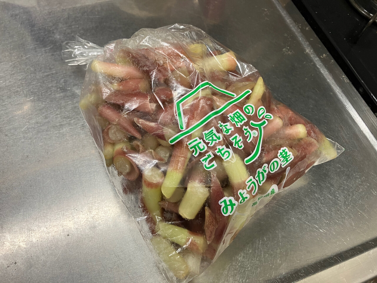 500g のみょうがを使うのは初めての体験なのですが、本当にすごい量ですね……