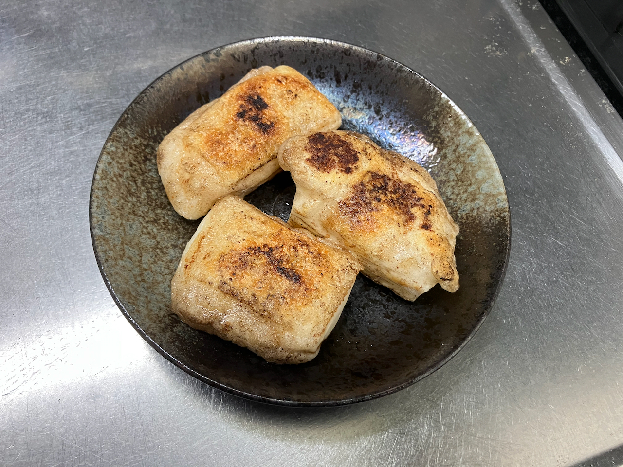 で、どうやって食べたらいいかなと思って知人に相談してみたところ「とりあえず焼いて、バター醤油に絡めてみたらいいんじゃない?」と教えてもらったので、やってみたのが冒頭の写真になります。