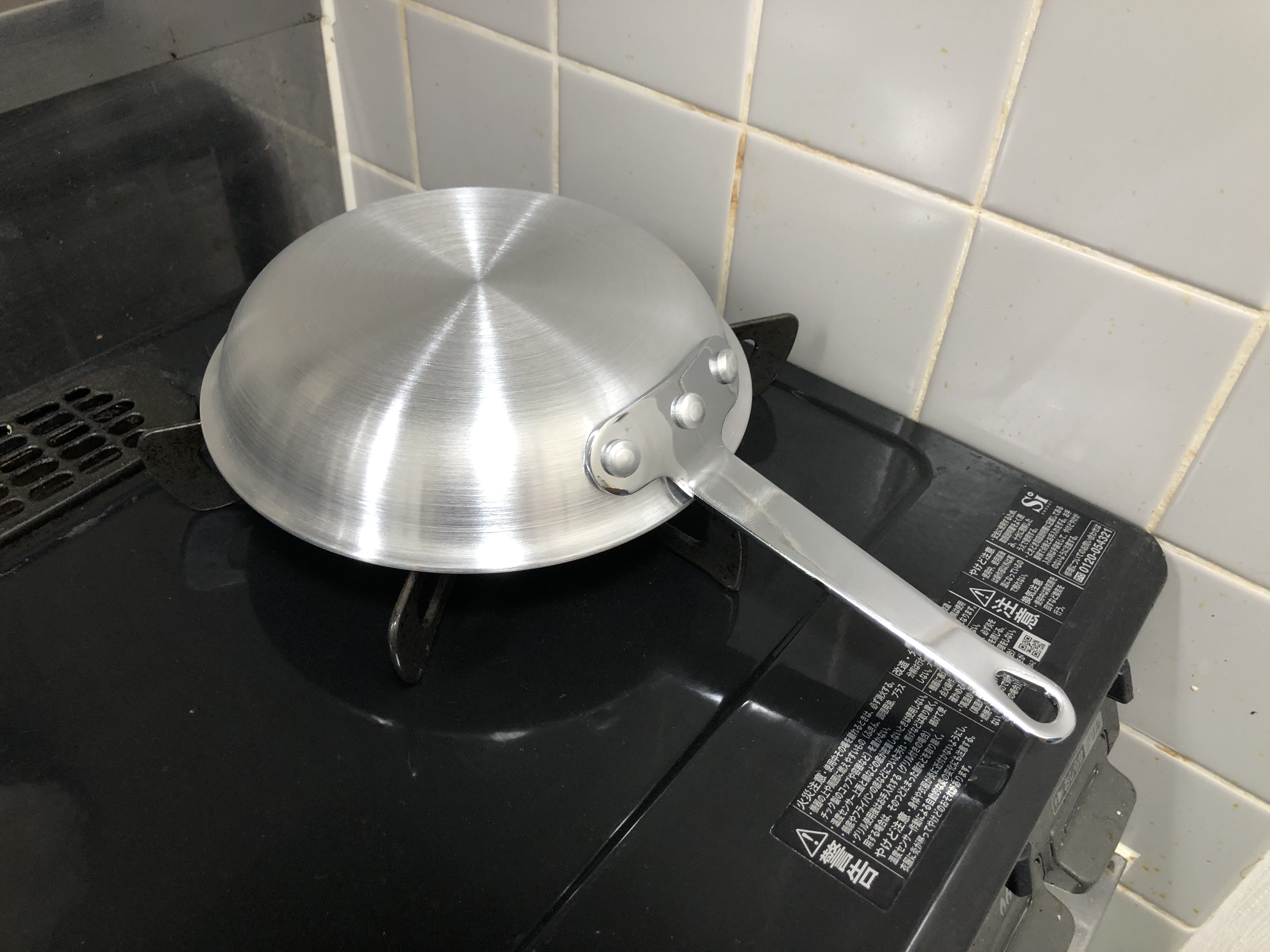 こうしてみると、新しいフライパンがかなり小さいことがはっきりと分かります。